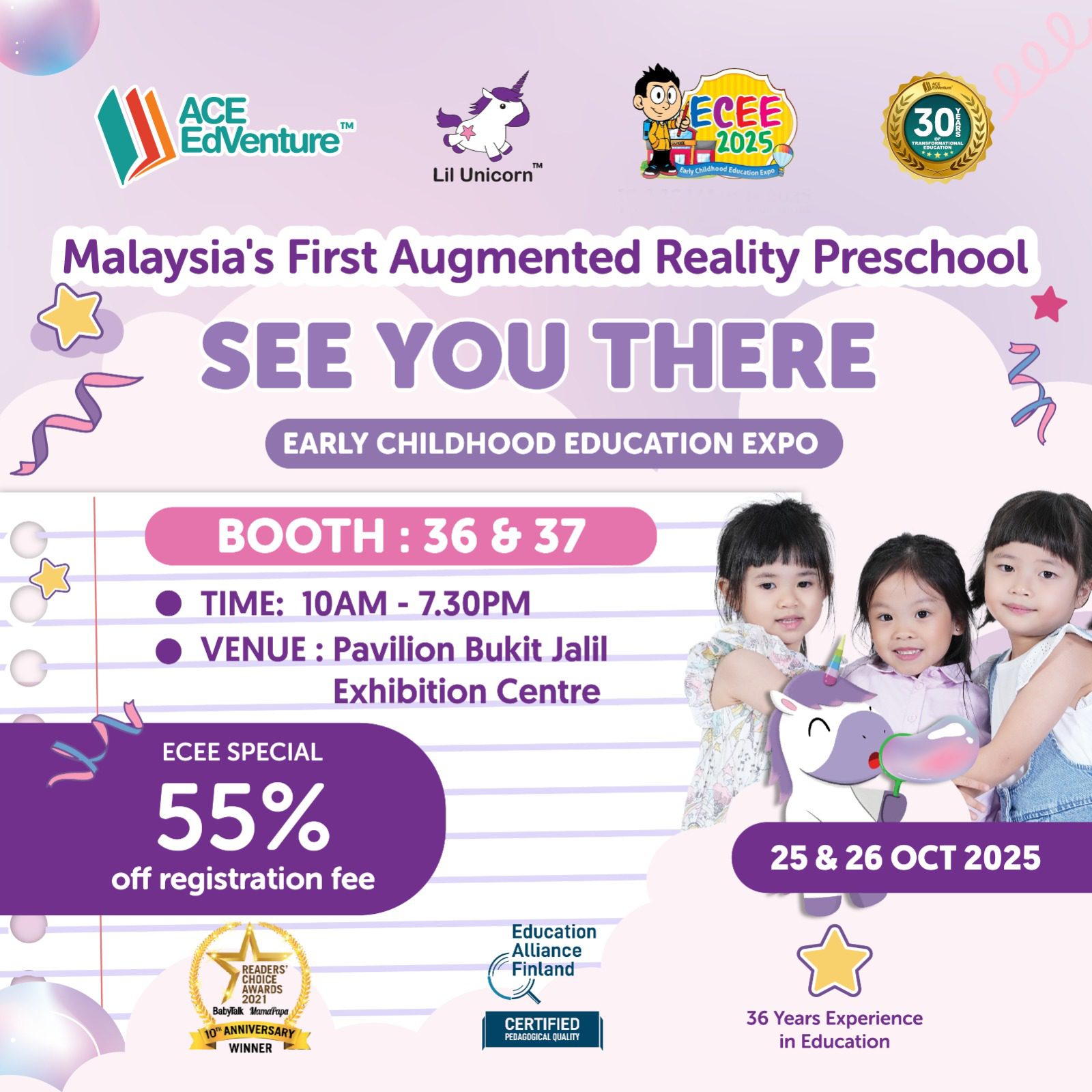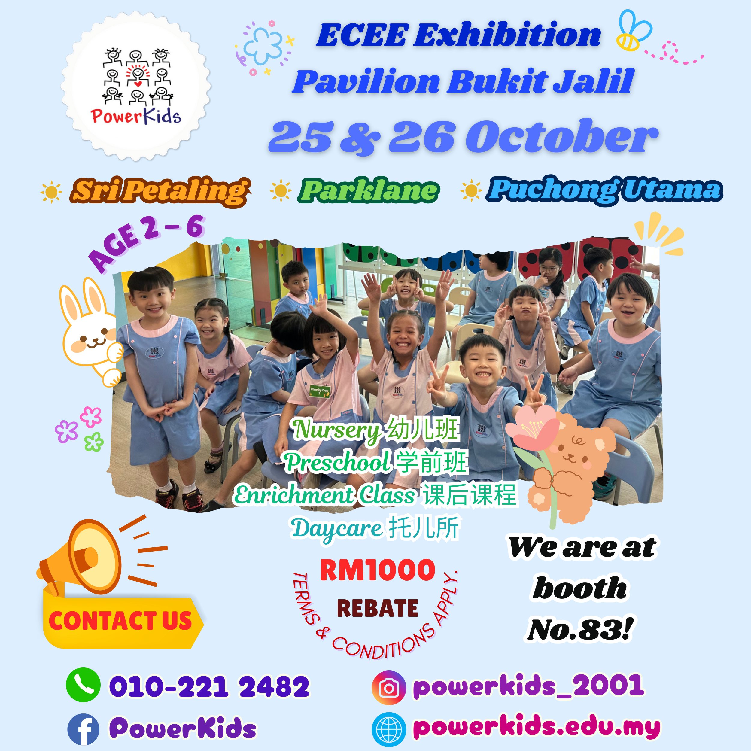 .ECEE is the FIRST Preschools Education and Kids Enrichment Expo which is held in several city including KL, Penang and Johor. The next ECEE will be held on 15 & 16 March at Pavilion Bukit Jalil Exhibition Centre, 20 April 2025 at Gurney Bay Hotel Penang and 4 & 5 October 2025 at Persada JB. ECEE 2025 will be an unique platform focusing and bringing together the early years education such as pre-schools, kindergartens, international schools, enrichment centres, software apps, learning centres, language centres, early childhood course, educational & learning materials and kids sports.
