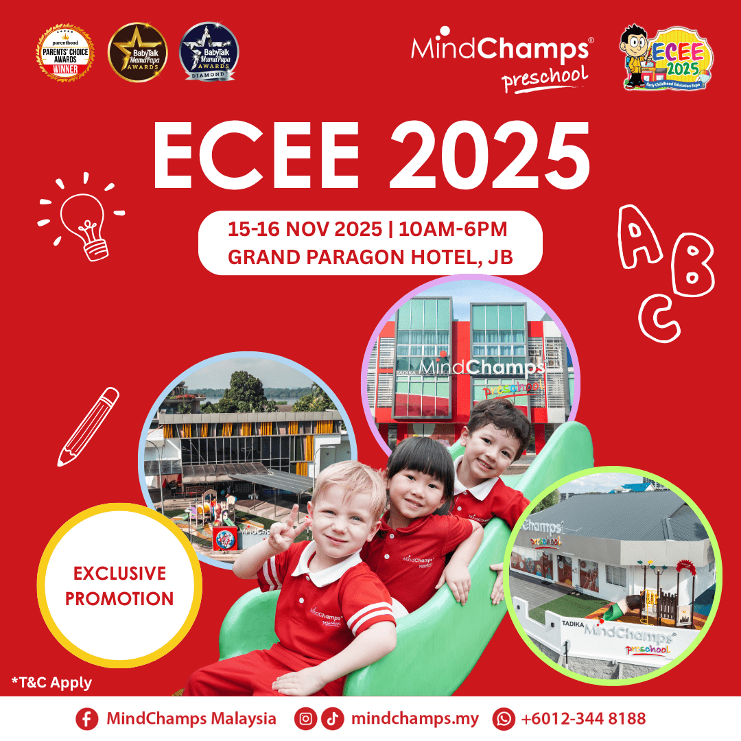 .ECEE is the FIRST Preschools Education and Kids Enrichment Expo which is held in several city including KL, Penang and Johor. The next ECEE will be held on 15 & 16 March at Pavilion Bukit Jalil Exhibition Centre, 20 April 2025 at Gurney Bay Hotel Penang, 9 & 10 August at IDCC Shah Alam, 25 & 26 October at Pavilion Bukit Jalil and 15 & 16 November 2025 at Grand Paragon Hotel JB. ECEE 2025 will be an unique platform focusing and bringing together the early years education such as pre-schools, kindergartens, international schools, enrichment centres, software apps, learning centres, language centres, early childhood course, educational & learning materials and kids sports.